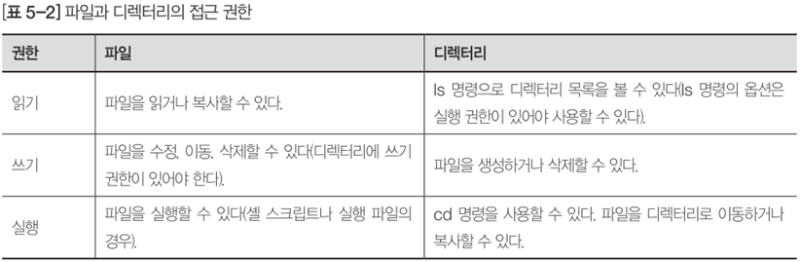 디렉터리 → drwxrwxr-x (소유자, 그룹 : 읽기, 쓰기, 실행 / 기타 : 읽기, 실행)