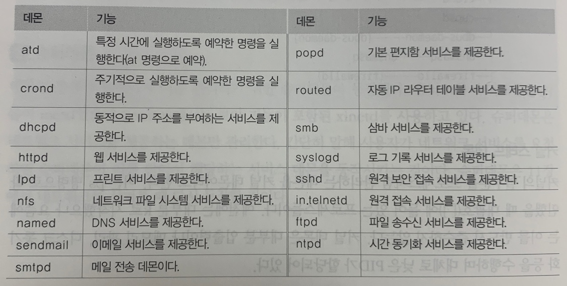 스스로 동작하는 독자형, 데몬을 관리하는 슈퍼데몬에 의해 동작하는 2가지 방식이 존재.