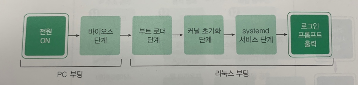 PC의 전원이 켜지는 순간부터 로그인 프롬프트가 출력될 때 까지가 리눅스의 부팅이다.