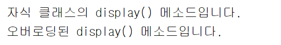 void display() { System.out.println("자식 클래스의 display() 메소드입니다."); }