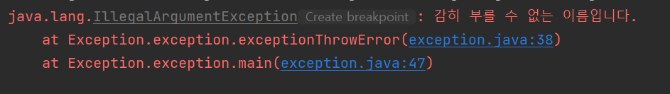 throw new IllegalArgumentException("감히 부를 수 없는 이름입니다.");