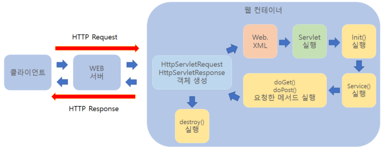 - Servlet의 생명주기를 관리 : 요청에 맞는 Servlet을 호출하고 수명이 다하면 제거한다. (+가비지 콜렉터)