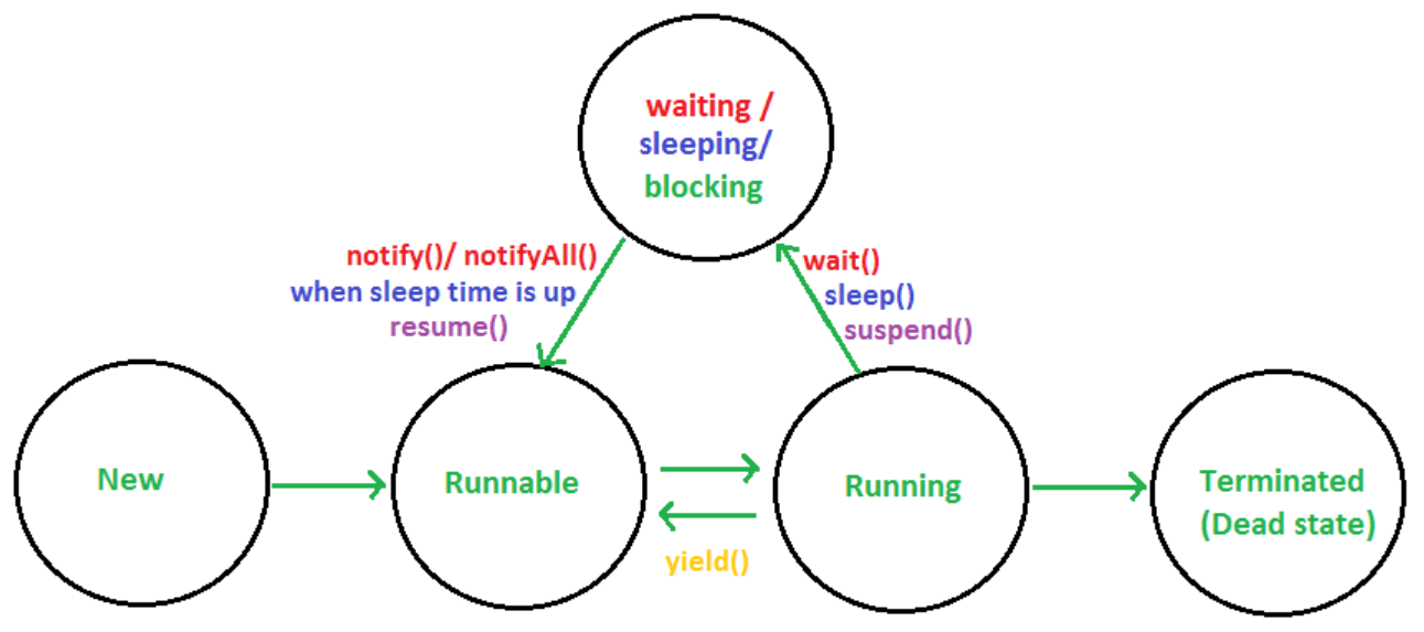 쓰레드는 다음과 같은 상태를 가진다.
