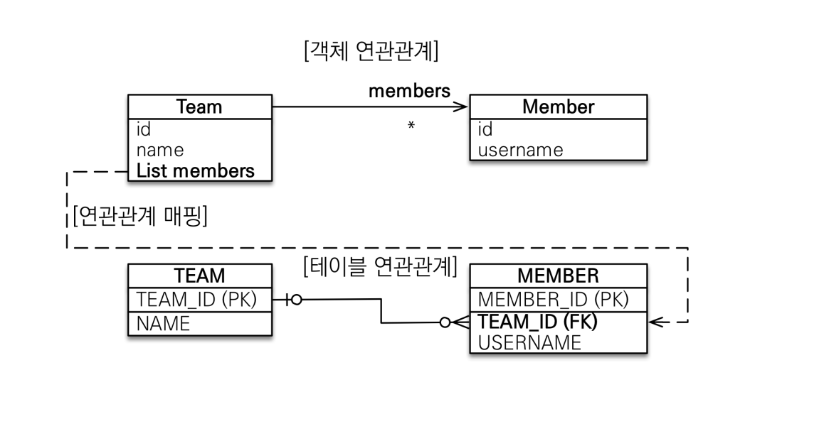 보통 자신이 매핑한 테이블의 외래 키를 관리하는데 Team.members로 회원 테이블의 TEAM_ID 외래 키를 관리한다.