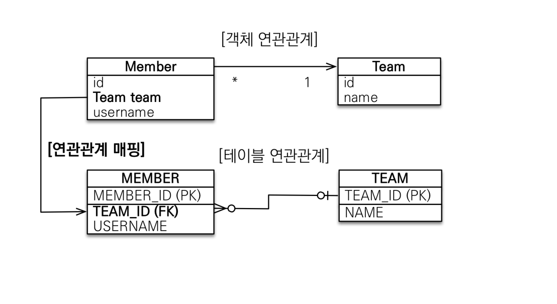 회원은 Member.team으로 팀 엔티티를 참조할 수 있지만 반대로는 참조할 수 없다.