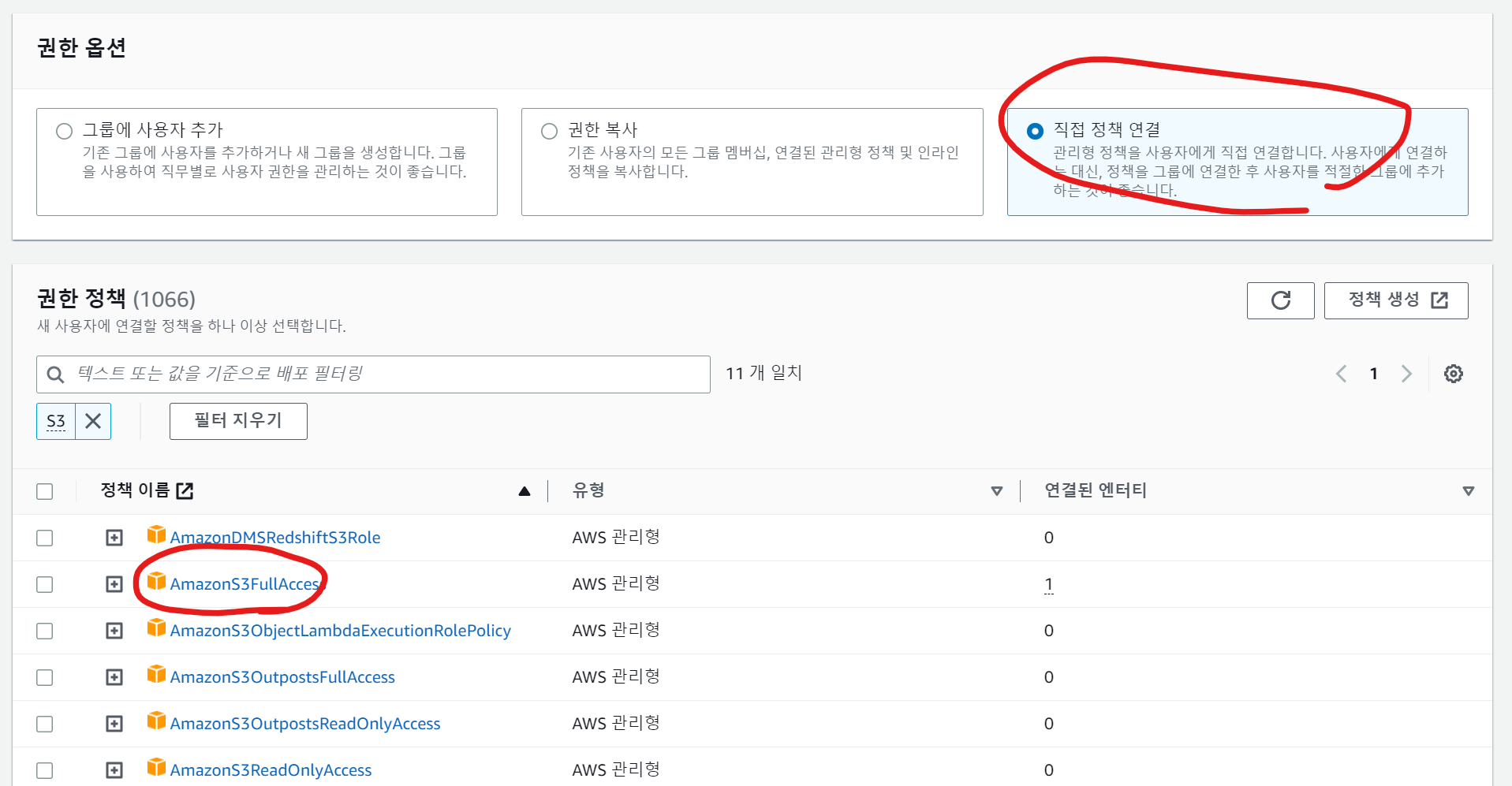 S3를 위한 권한이므로 S3 관련 모든 권한을 부여해 준다.