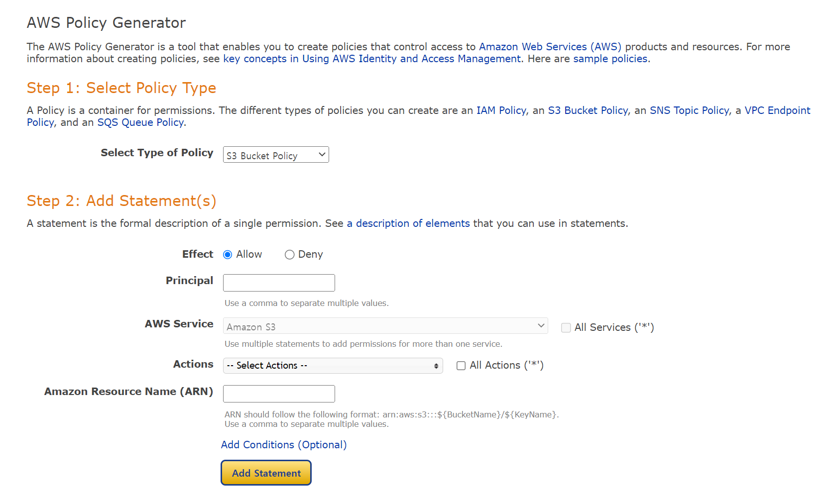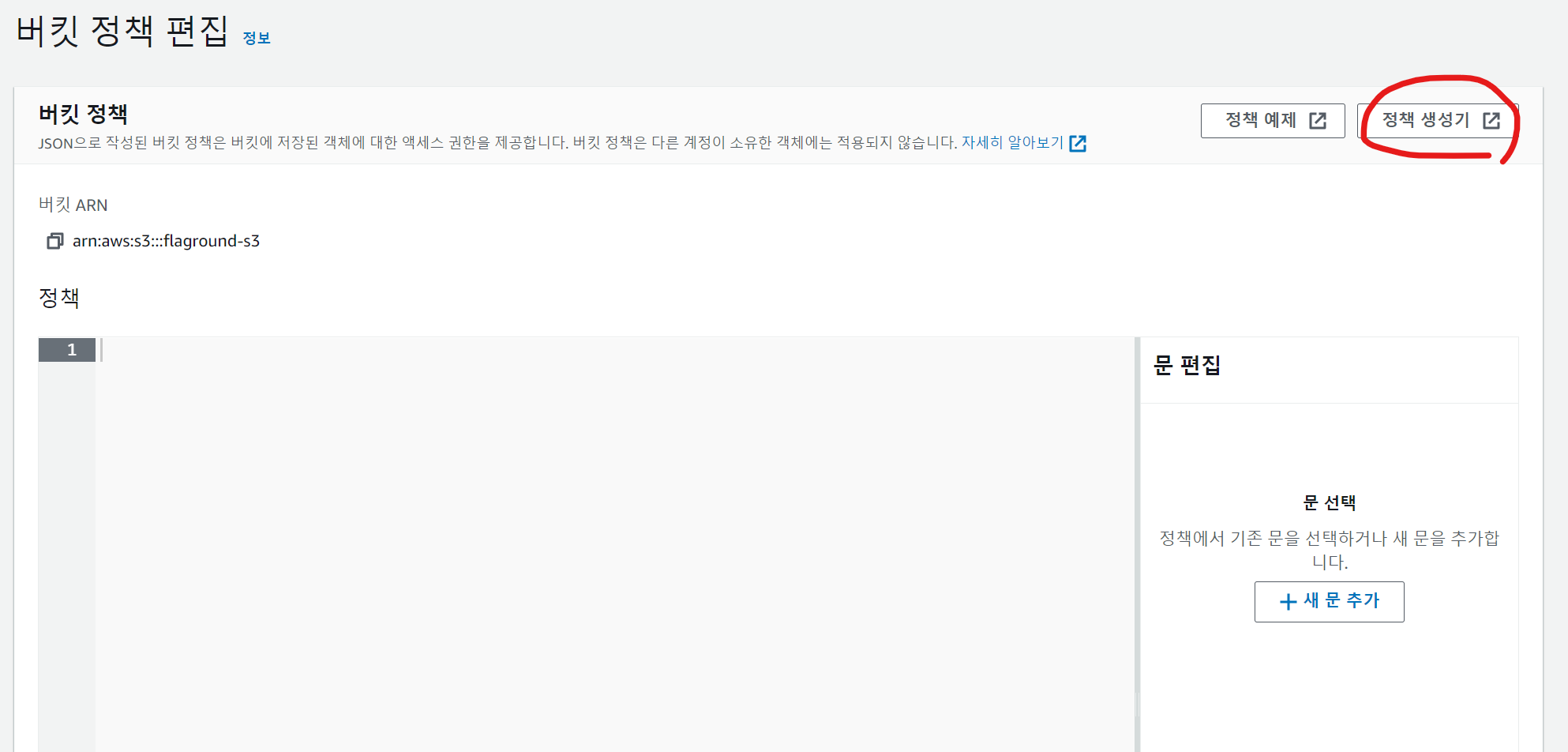 Json 문법으로 작성해야 하는데 우리가 힘들게 작성할 필요가 없이 정책 생성기를 통해 만들 수 있다.