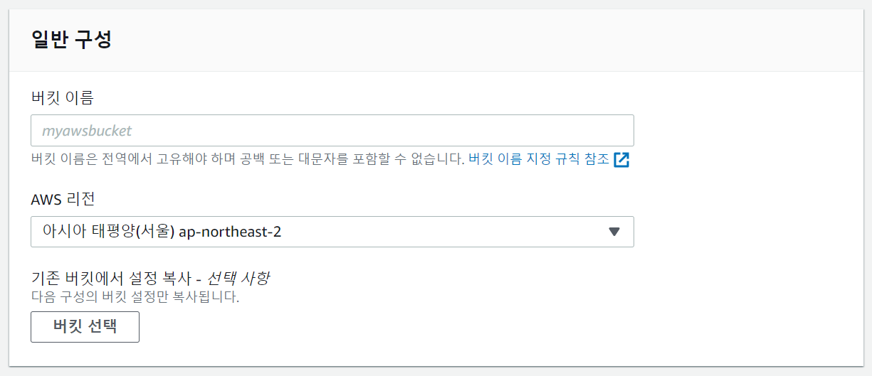 버켓은 하나의 인스턴스라고 생각하면 된다! 적당히 이름을 입력해 준다.