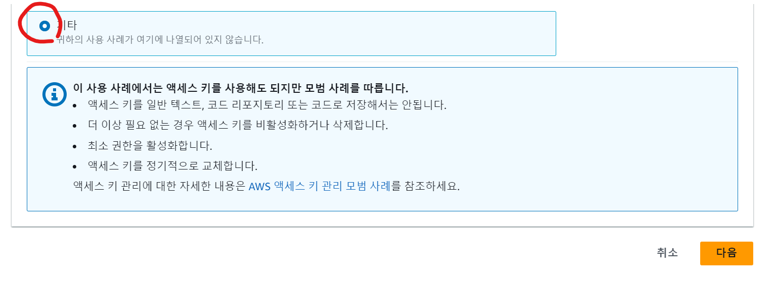 선택할 수 있는 경우 중 기타를 고르고 넘어간다.