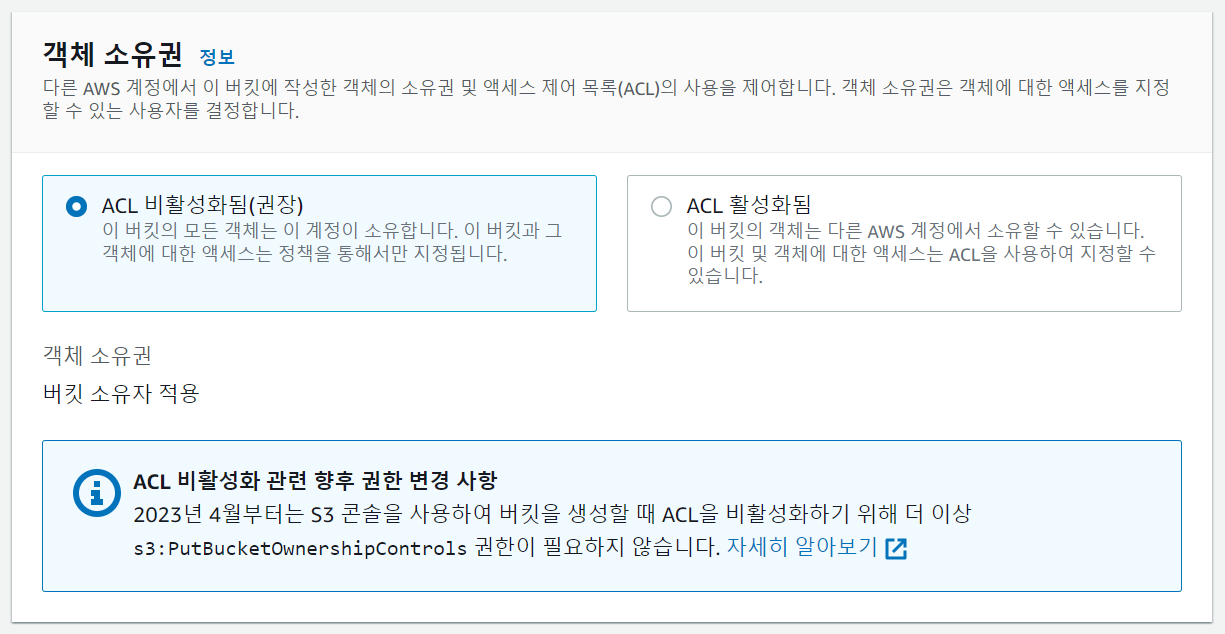 - ARN : 버킷 ARN 복사해서 붙여 넣기