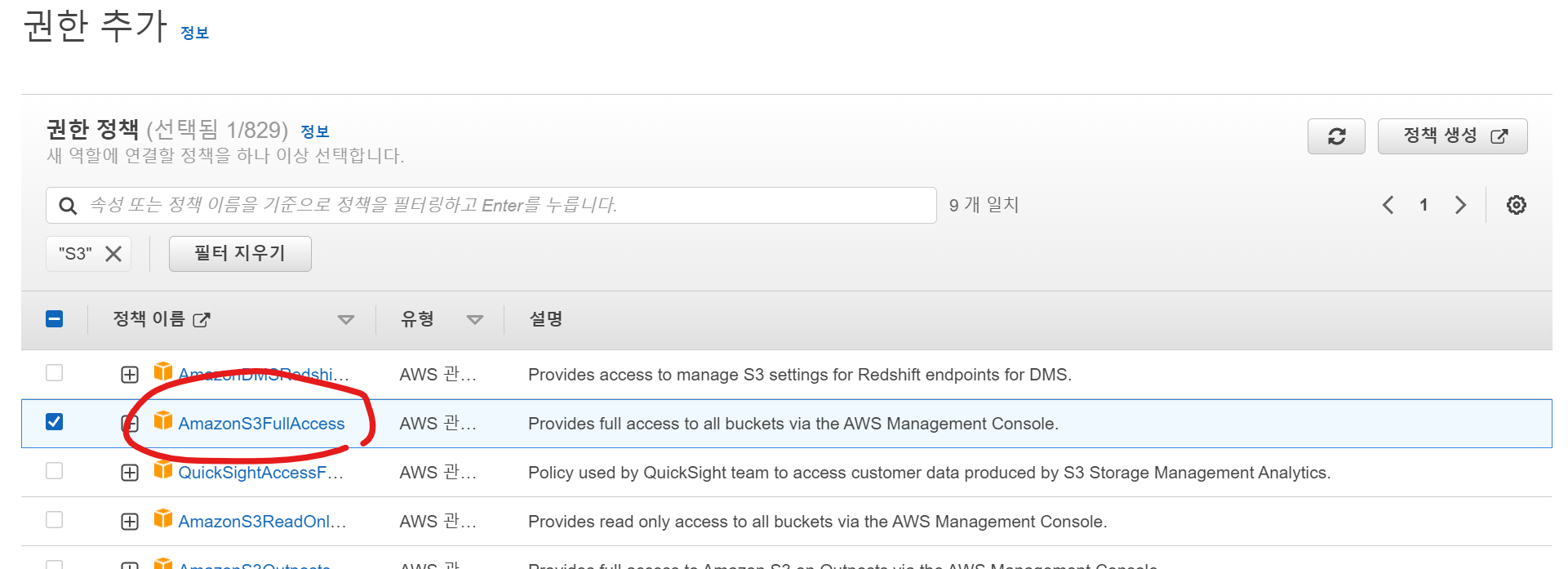 따라서 다음 2개의 권한 정책을 선택해 주면 된다!