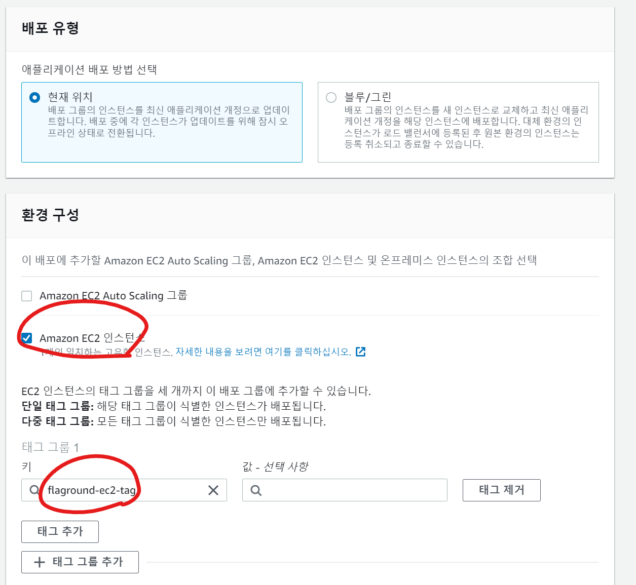 어떤 인스턴스에 배포를 할 것인지 CodeDeploy에게 알려줘야 하는데 여기서 Tag를 통해서 알려준다.