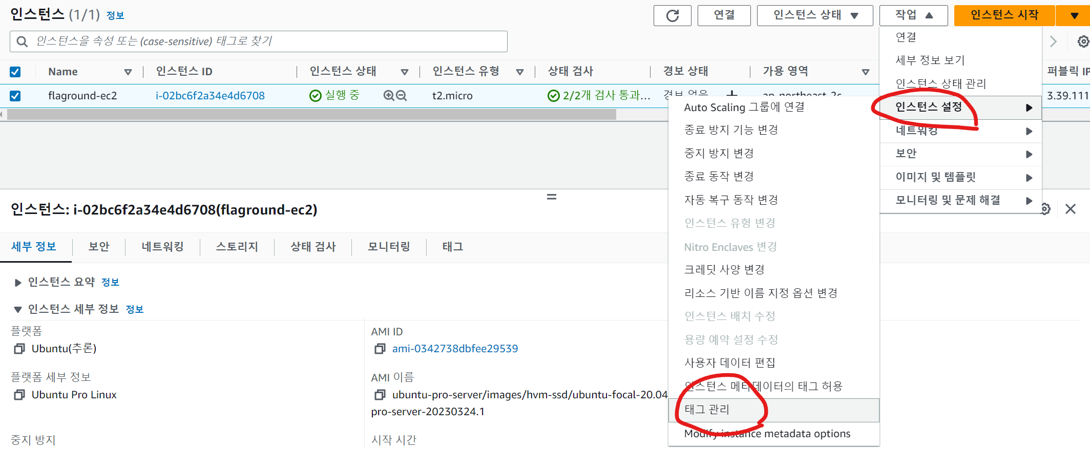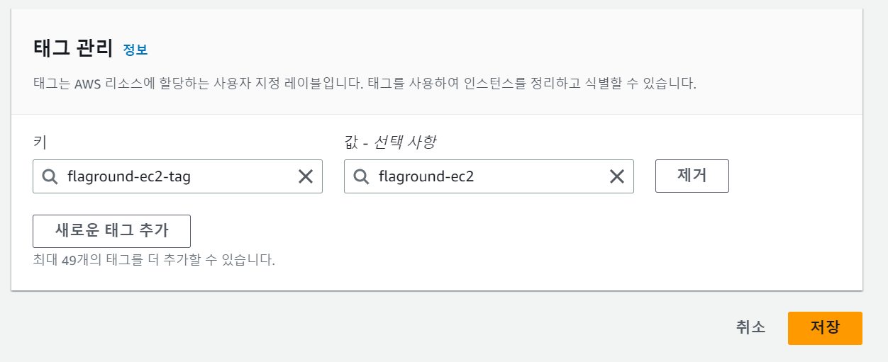 EC2 인스턴스를 선택하고 처음에 설정해 줬던 태그를 선택해 준다.