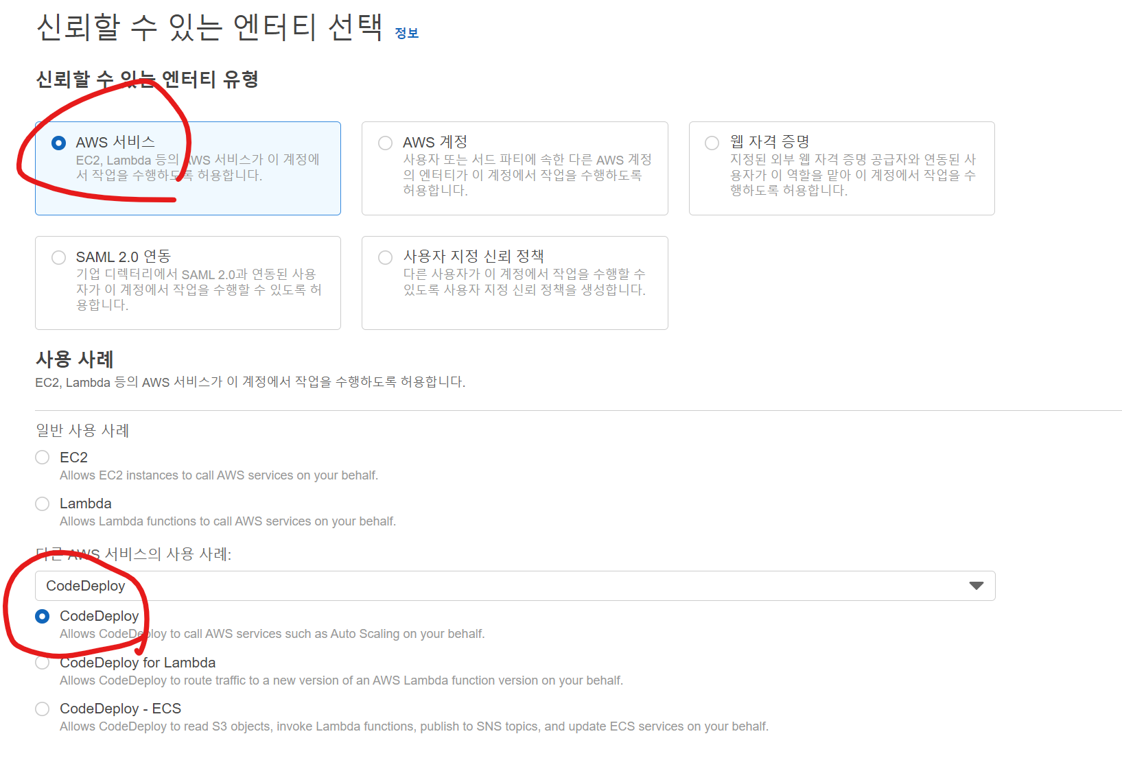 CodeDeploy 애플리케이션이 사용할 역할이 필요하다! 이전처럼 진행해 주면 된다.