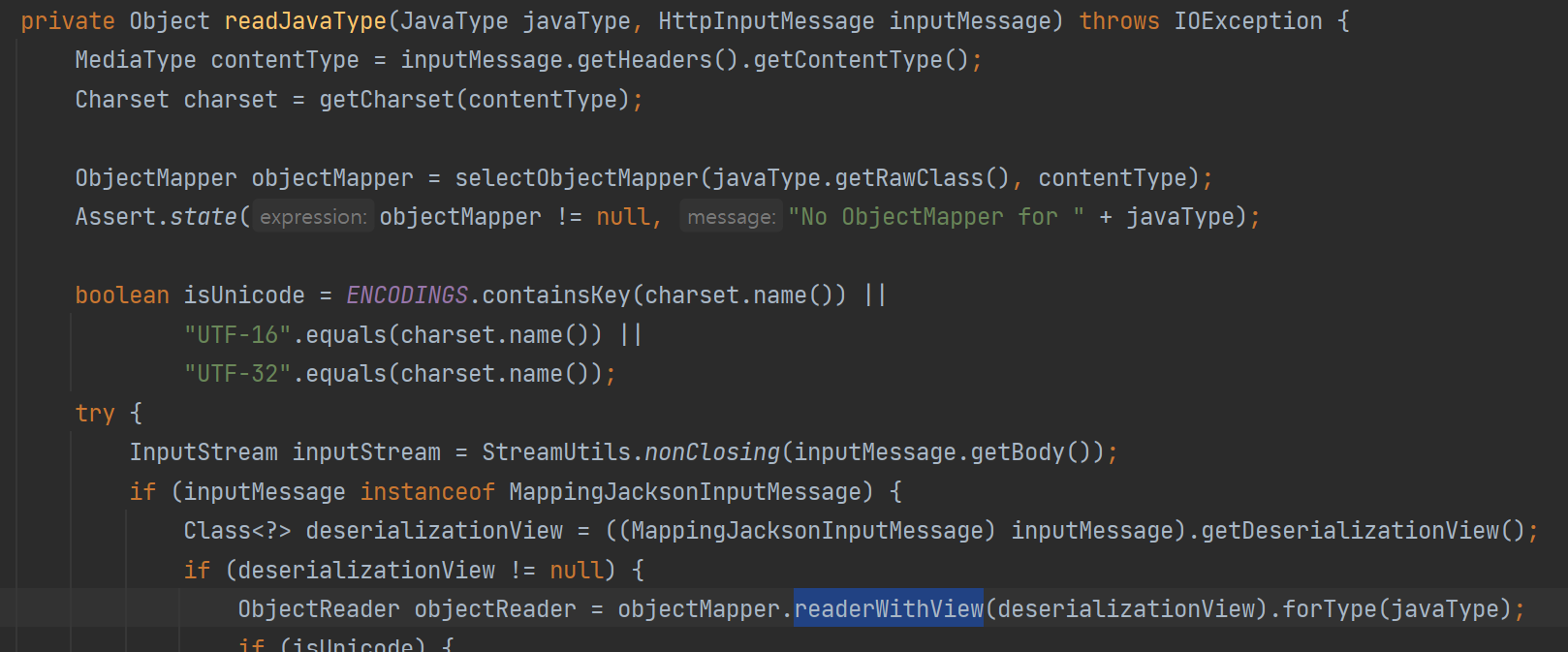 여기서 readJavaType()이라는 메서드를 보면 역직렬화를 사용한다. 즉, 여기서도 리플렉션 API가 사용된다.