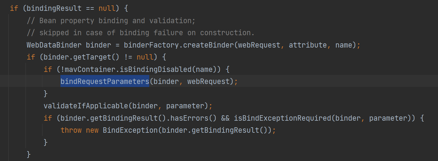 Argument Resolver가 없다면Spring MVC는ModelAttributeMethodProcessor를 우선적으로 호출한다. ModelAttributeMethodProcessor의supportsParameter()가 바인딩이 가능할지 확인한다.- 바인딩이 가능하다면