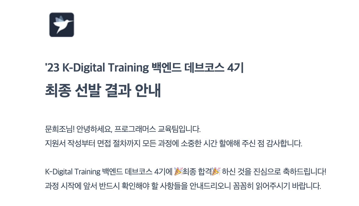 이 후기를 읽고 다음 기수분들도 합격하셨으면 좋겠습니다! 감사합니다 😋😋
