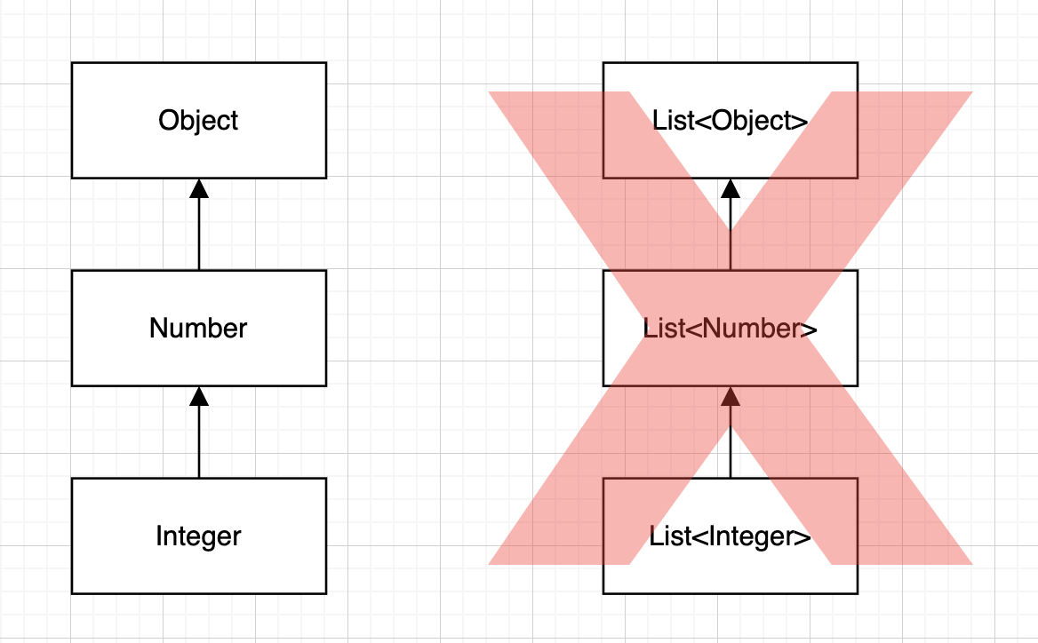 앞서 언급했듯이 자바 제네릭은 무공변입니다. 이해를 위해서 다이어그램을 보겠습니다.