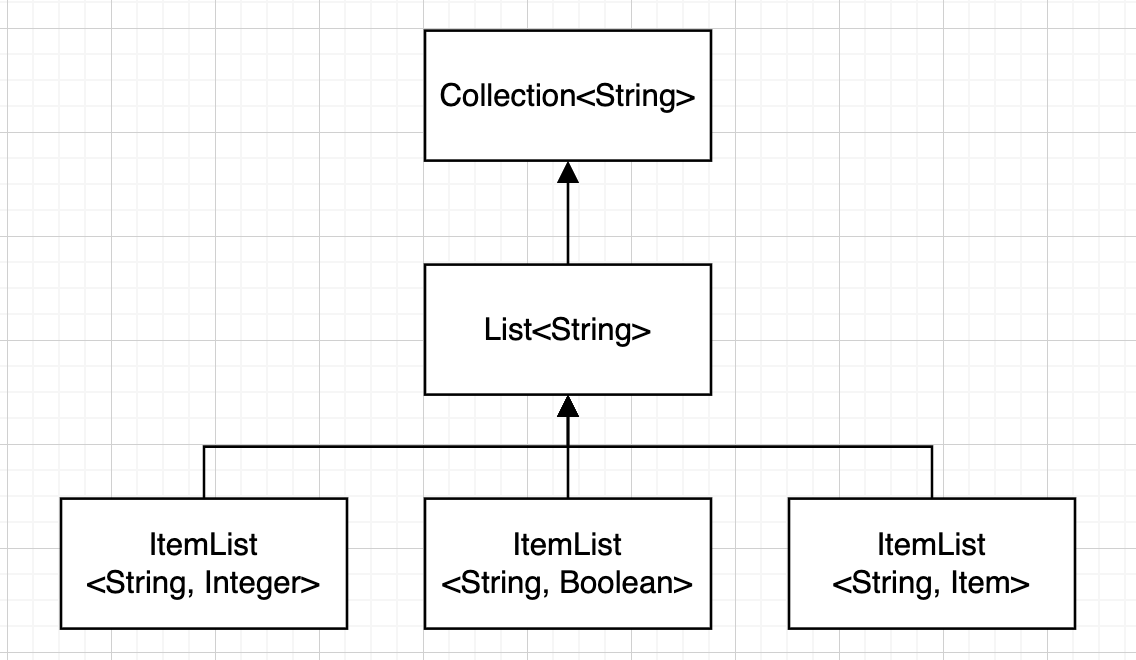 앞서 언급했듯이 자바 제네릭은 무공변입니다. 이해를 위해서 다이어그램을 보겠습니다.