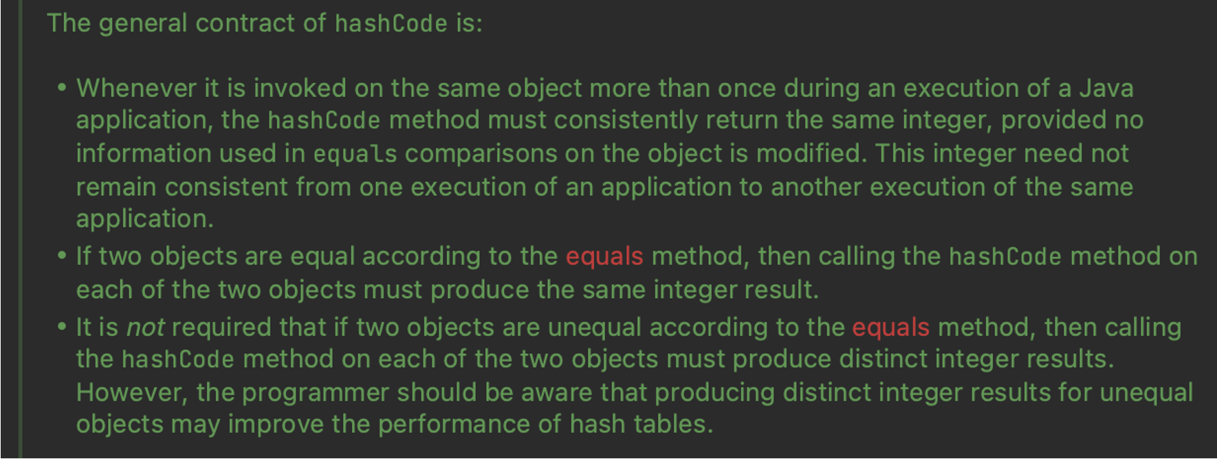 다음 그림은 hashCode()에 작성되어 있는 문서입니다.