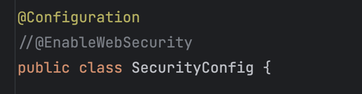 다음과 같이 단 어노테이션 하나만 달아주면 기본적인 시큐리티 설정이 완료됩니다.
