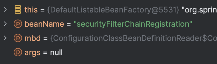 그 뒤로 내부적으로 필요한 Bean들을 생산하는데 그 중에 securityFilterChain
