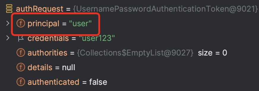 - Principal : 사용자 식별 정보입니다. Object로 구현되어 다양한 값을 받는다는 점이 핵심입니다.