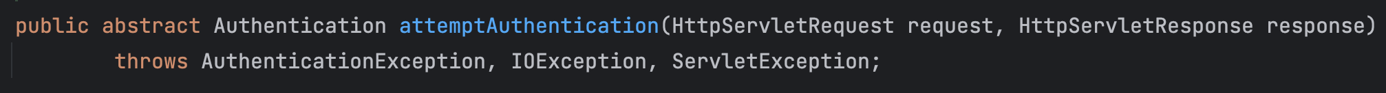 attemptAuthentication()는 추상 메서드로 실제 구현체의 도움을 받아서 인증을 진행합니다.