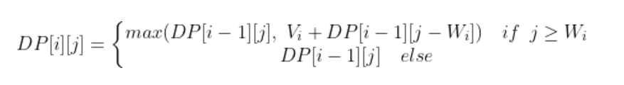 DP[i][j] = max(DP[i][j], v[i] + DP[i - 1][j-w[i]]);